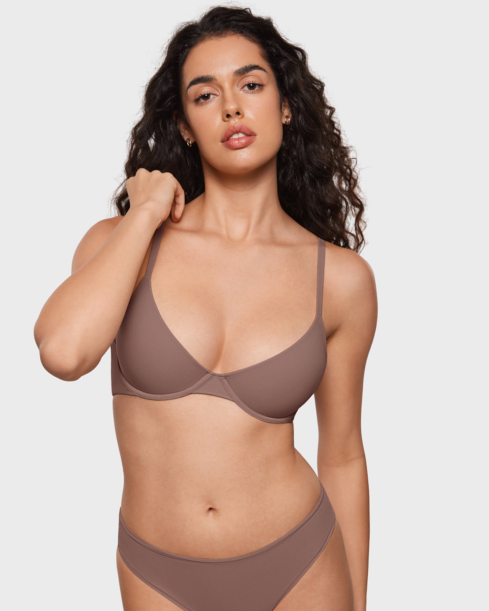 - Lightly padded cups with underwire for nipple coverage and support