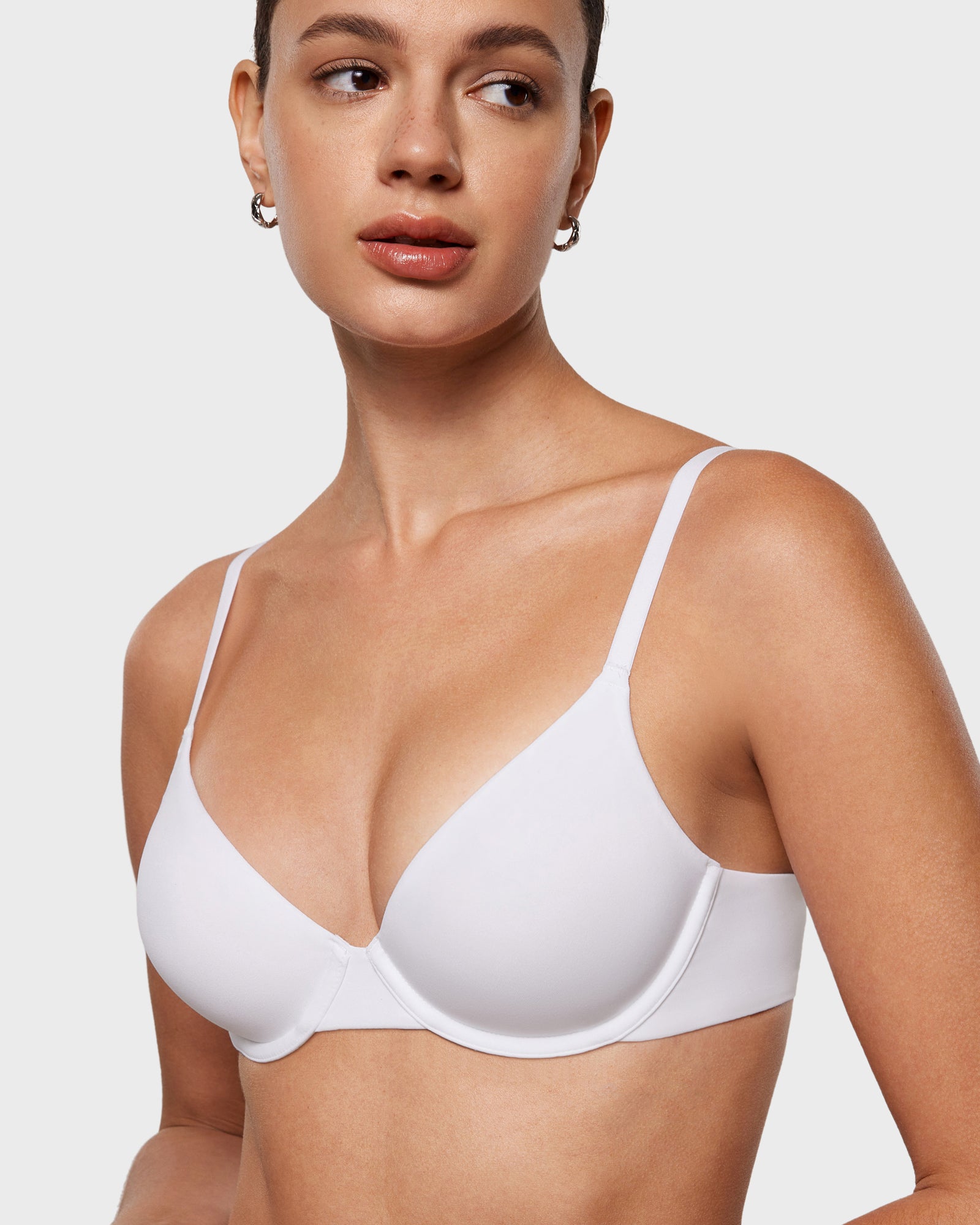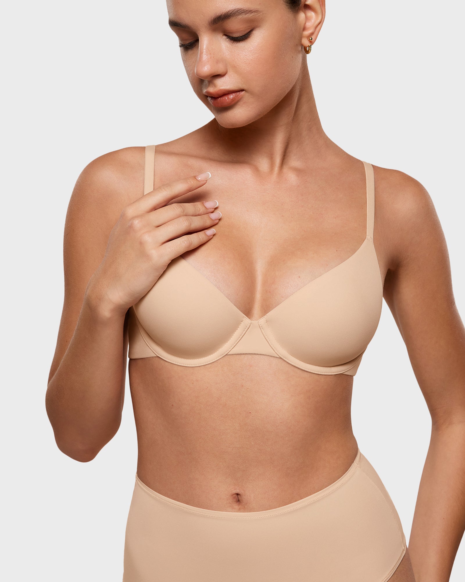Unlined cups with underwire give natural support. Demi style offers perfect coverage. Smooth cup ensures seamless look under clothes. Adjustable straps and hook-and-eye back closure for a customized fit. Your comfy, stylish bra solution!.
