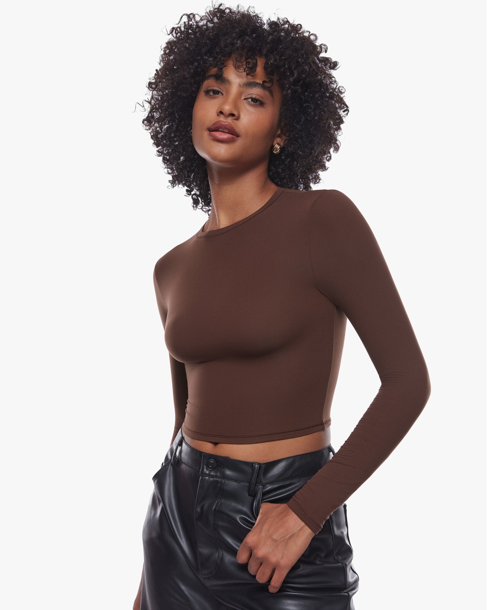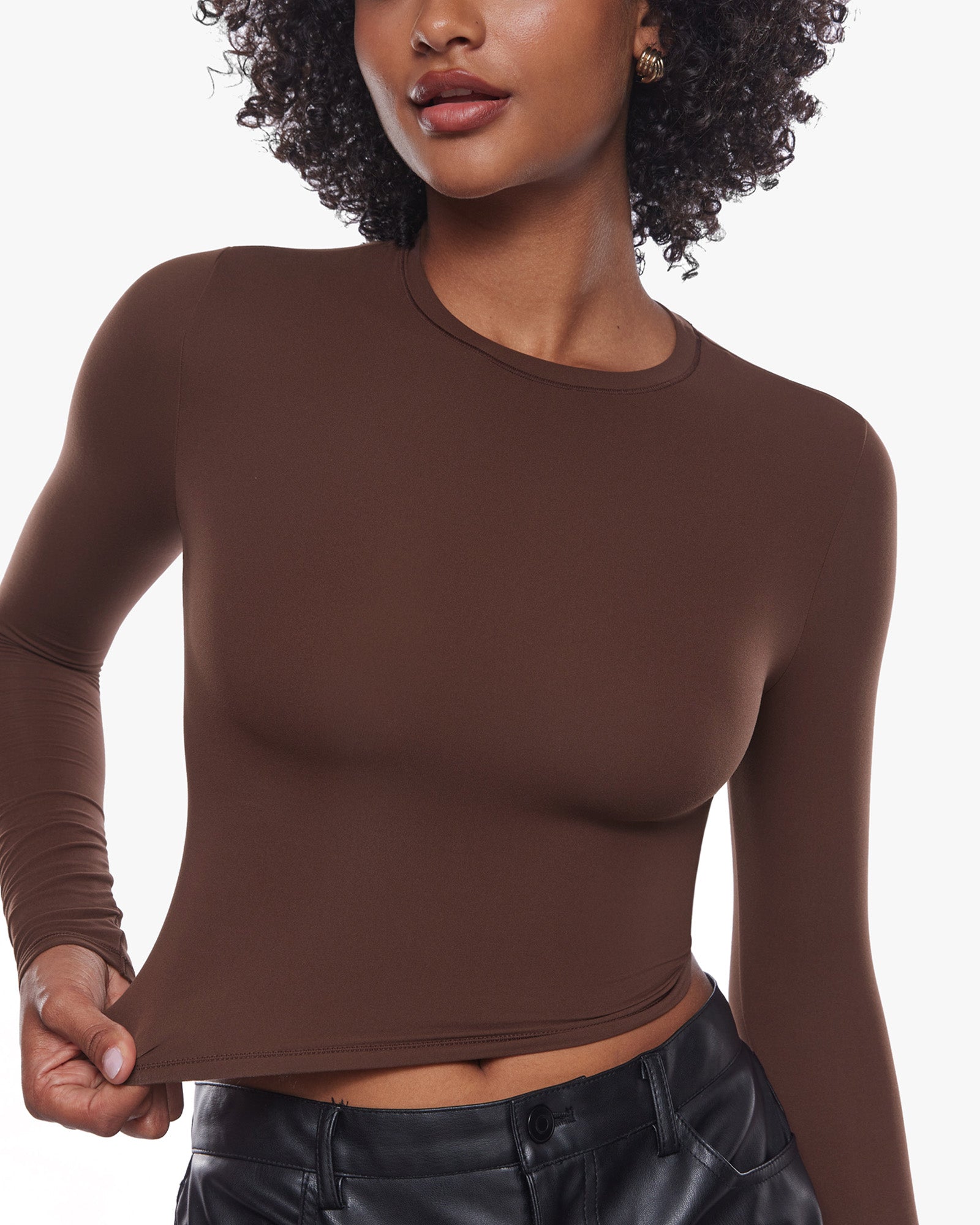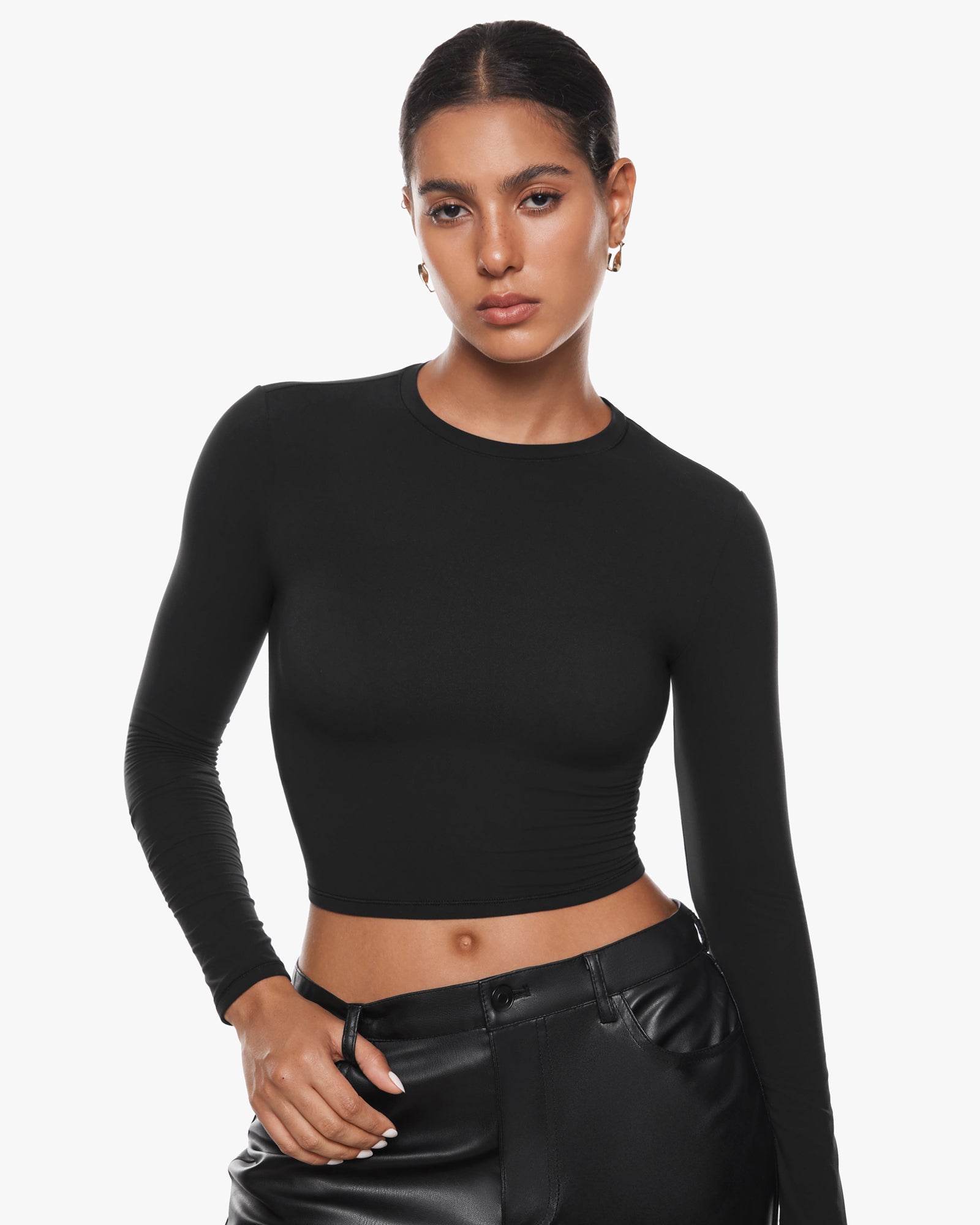 Experience the Inbarely® Soft Basic Long Sleeve Tees—ultra-soft, double-layered for warmth and style. With a crop length and crew neckline, they offer a figure-hugging fit for versatile, everyday wear.