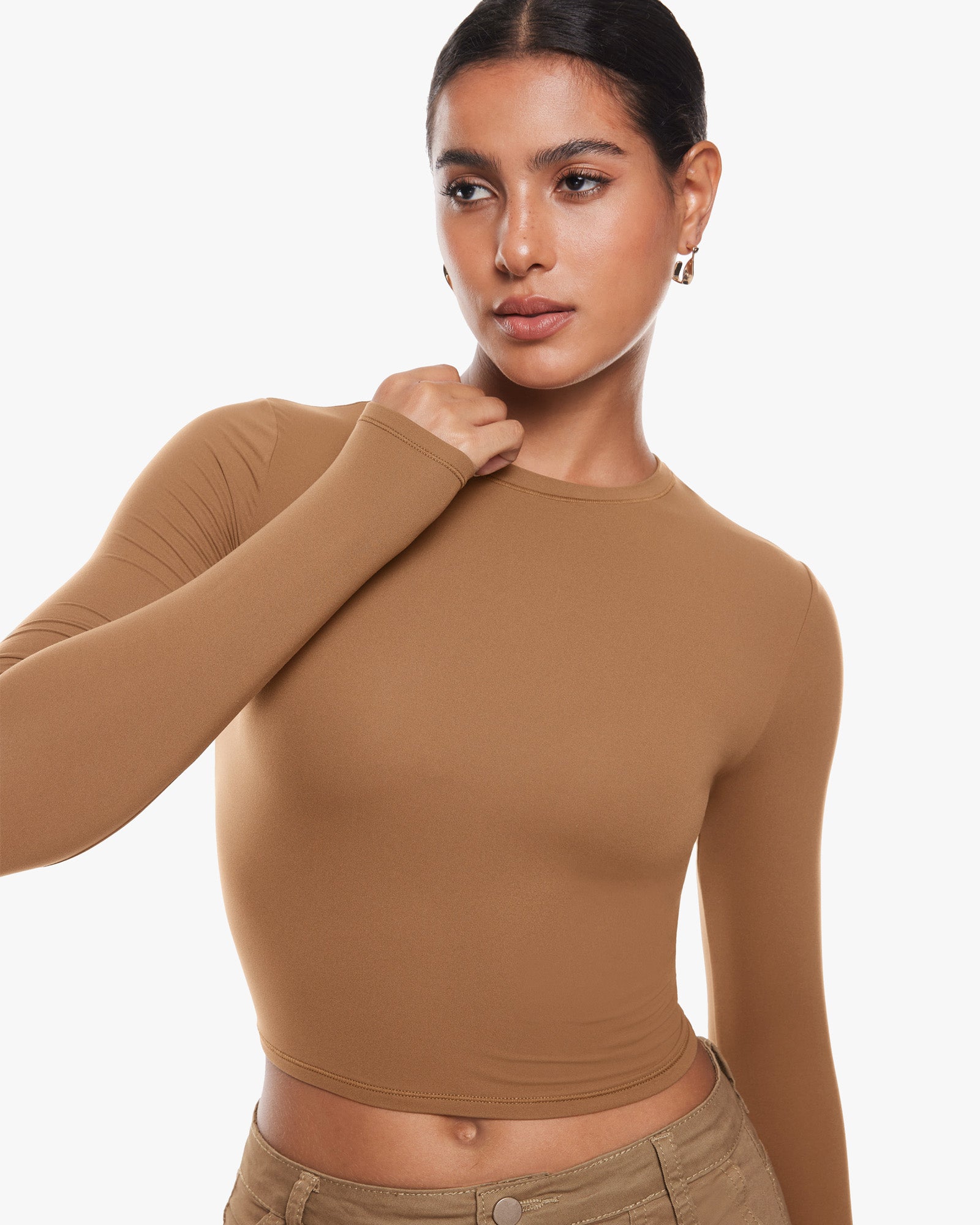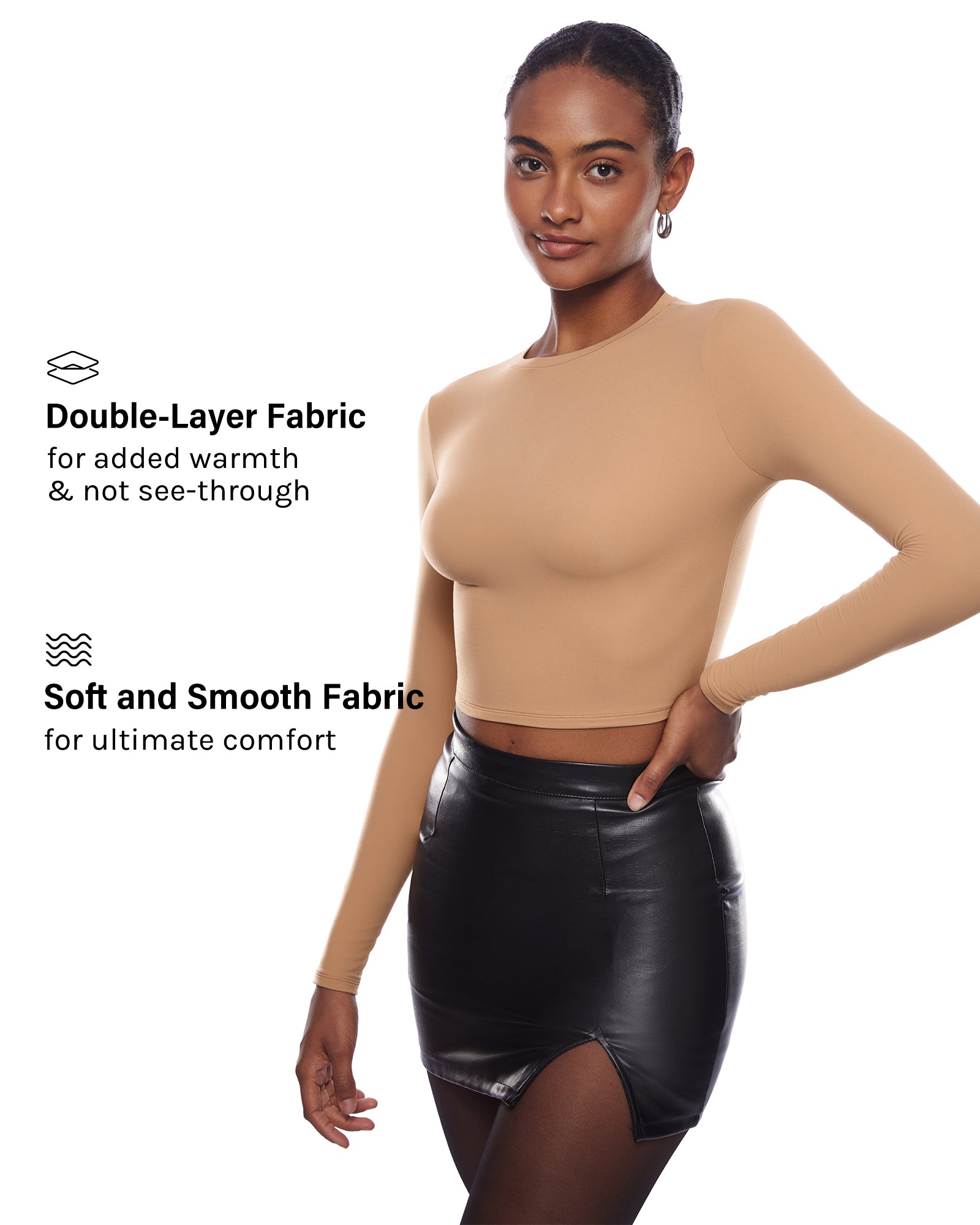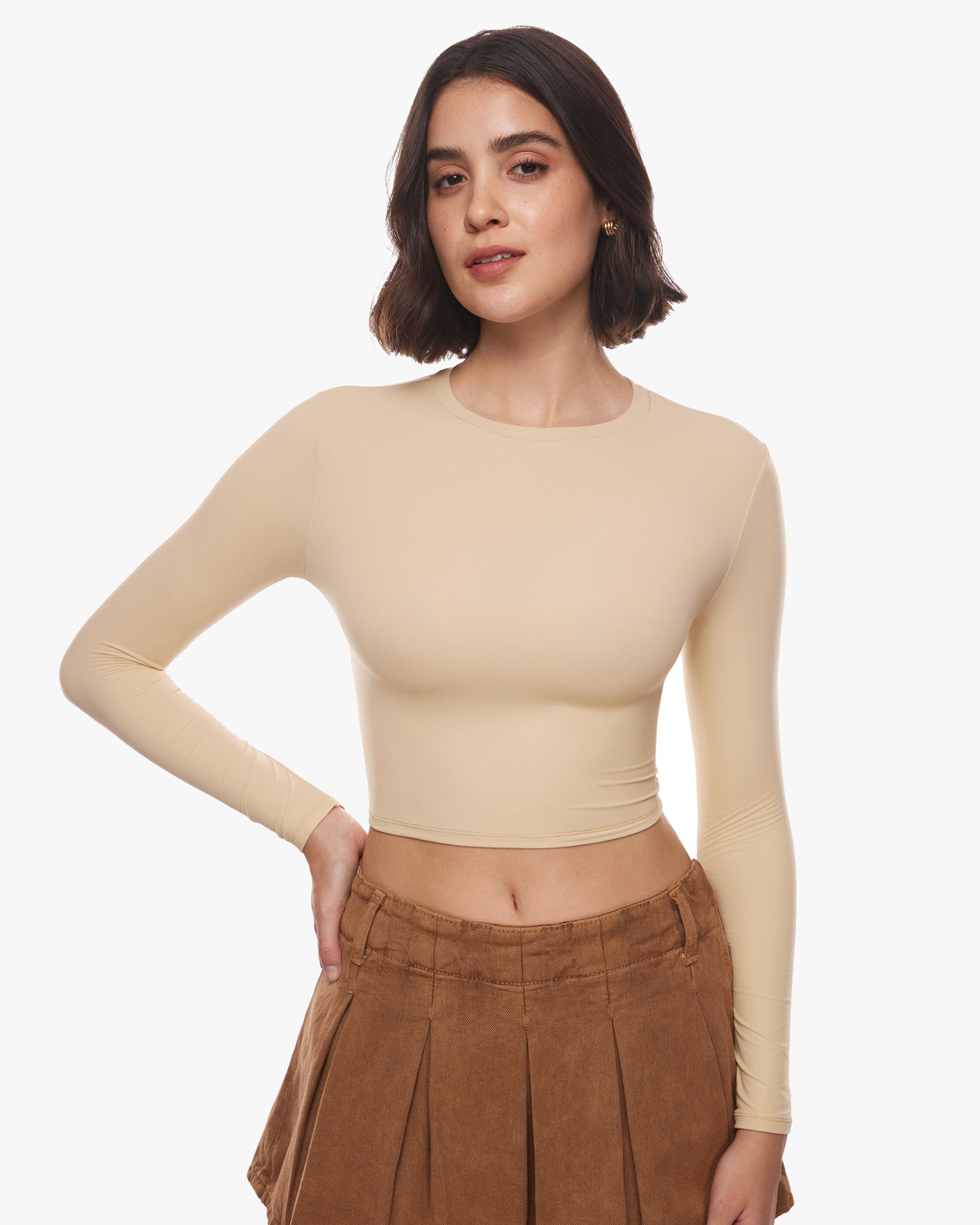 Inbarely® Soft Long Sleeve Crop Top - Double Layer