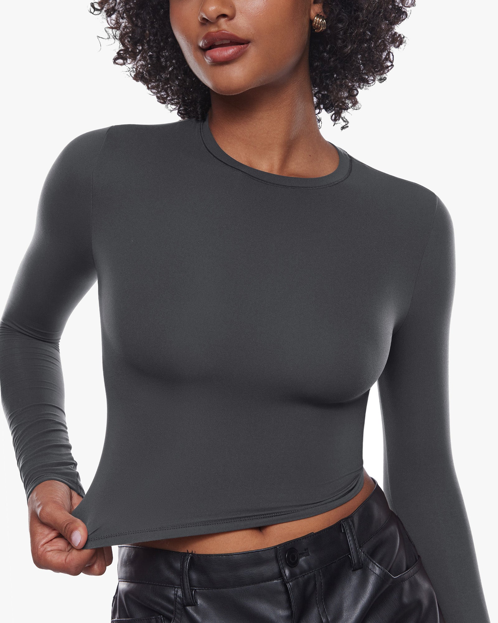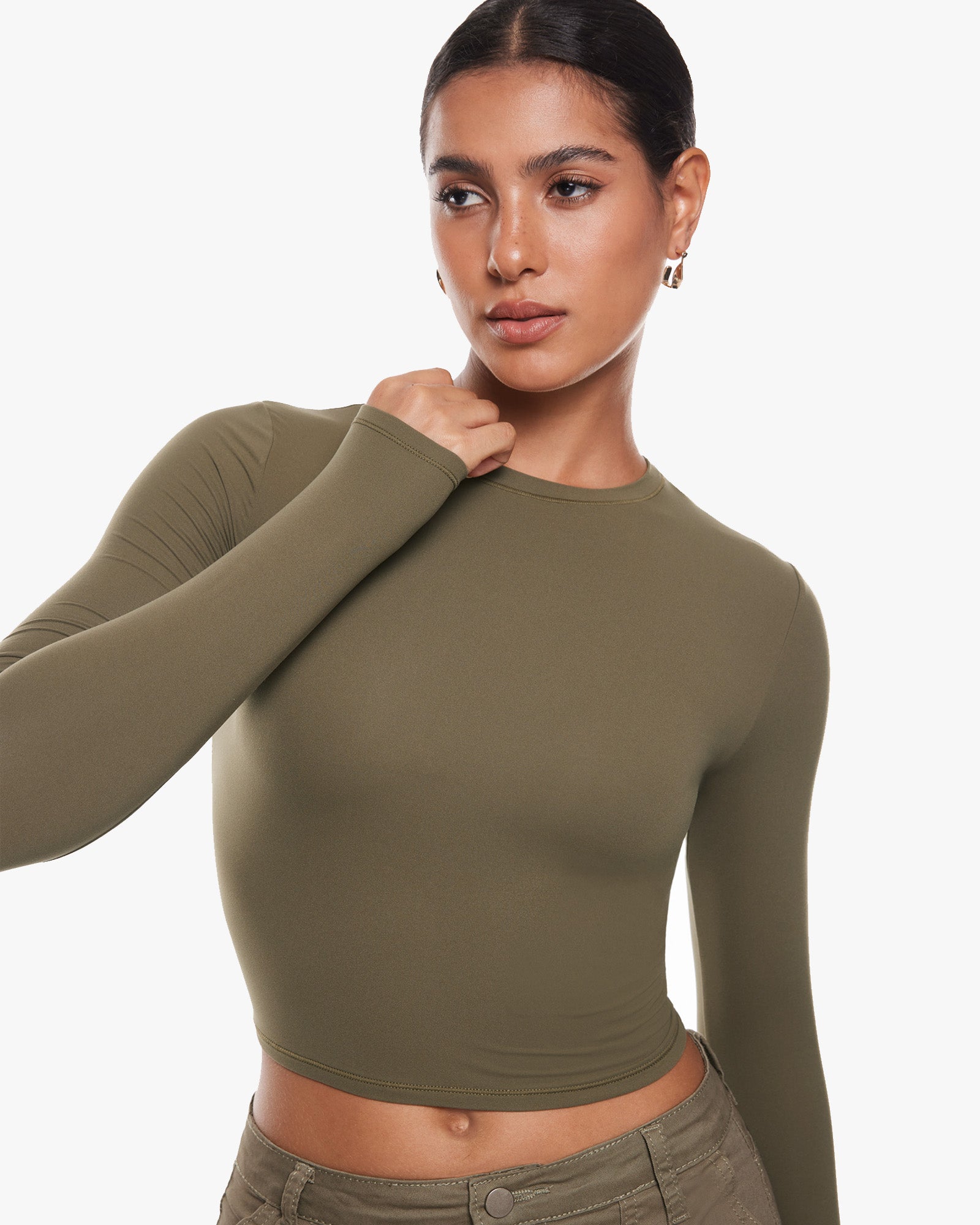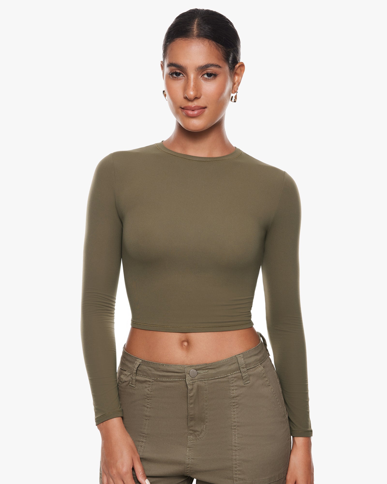 Inbarely® Soft Long Sleeve Crop Top - Double Layer