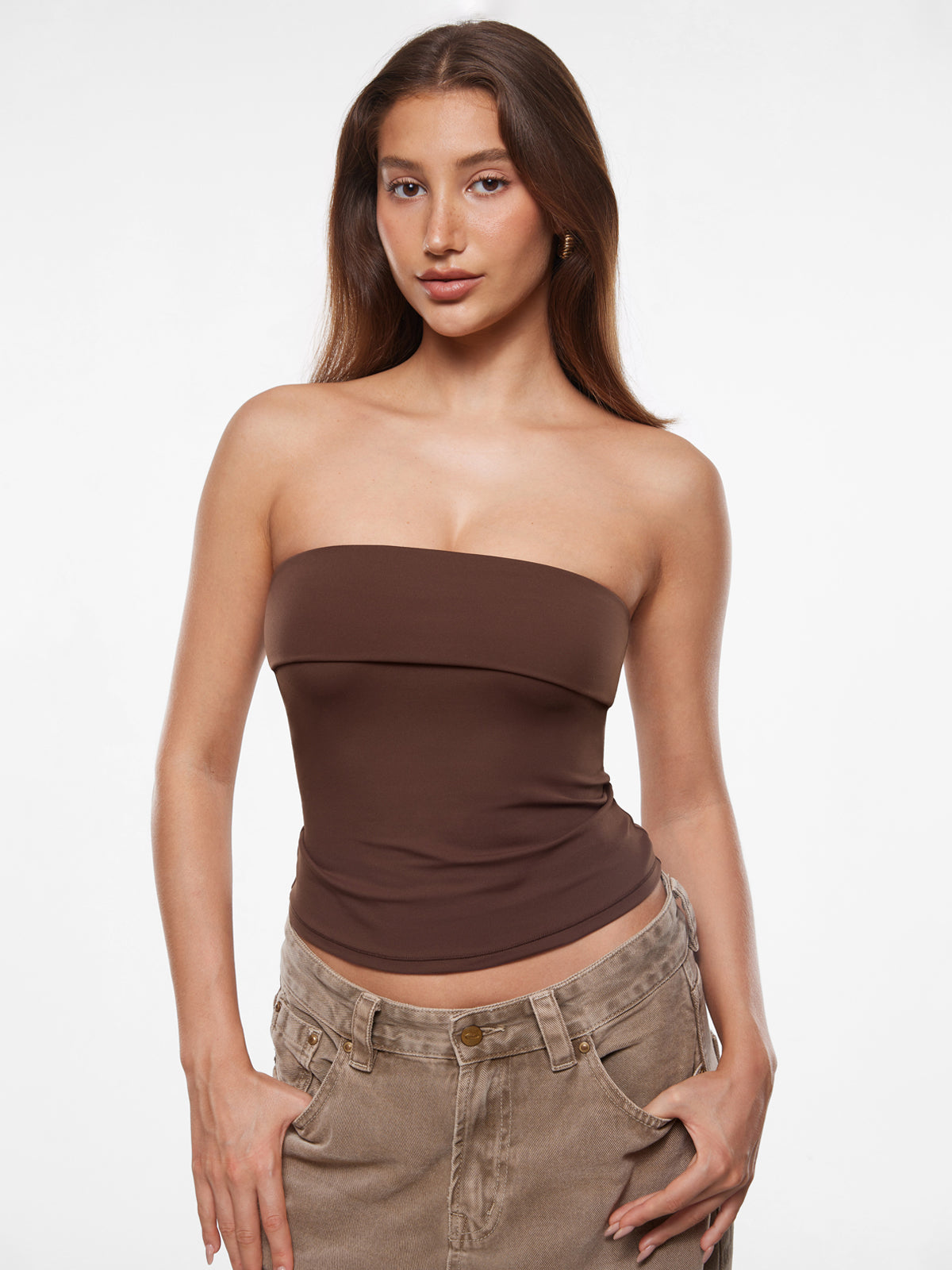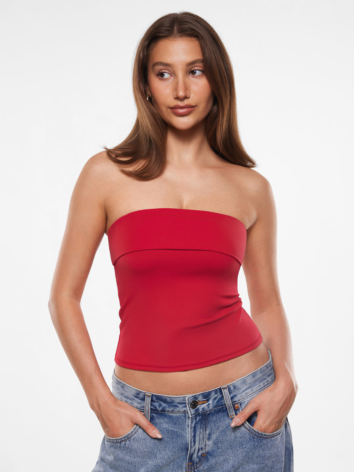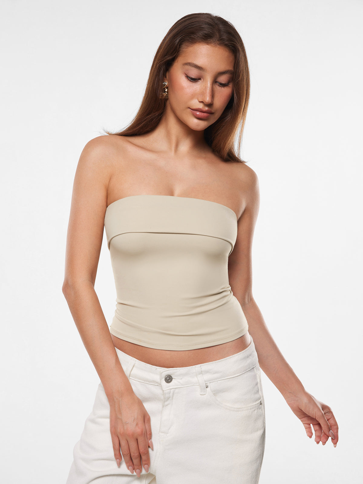 Radiate effortless style in the Natrelax tube top! Its chic folded neckline and body-hugging silhouette create an instant sleek look. Crafted with smoothing, 4-way stretch fabric and a stylish double-layered collar, this non-slip crop top offers confidence for dates, nights out, or daily fashion moments.