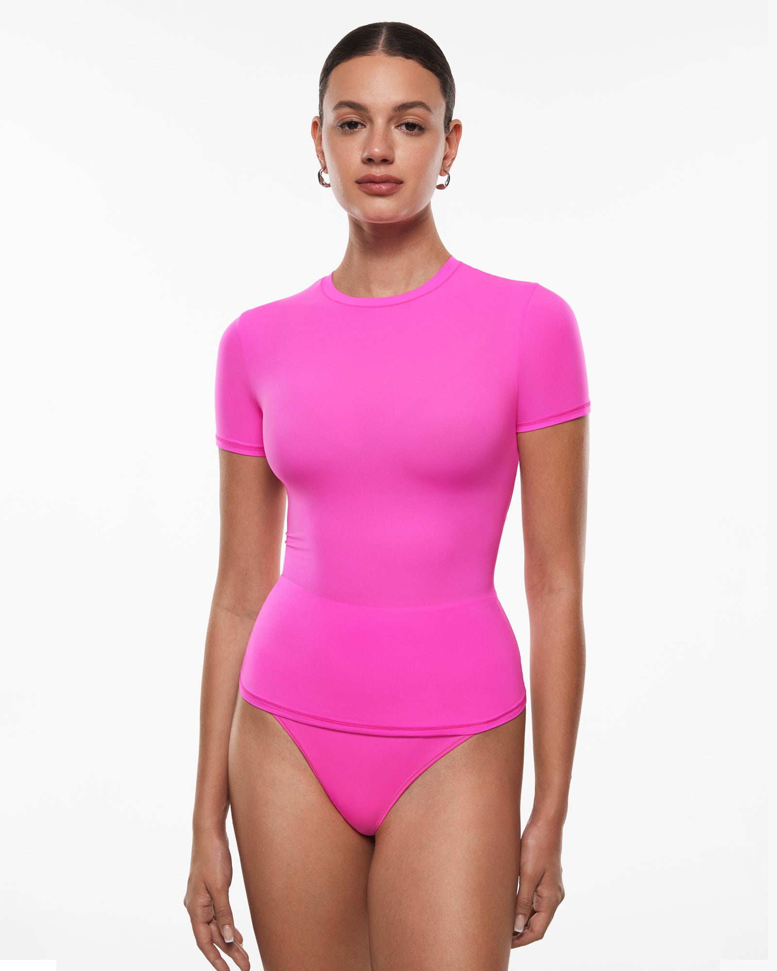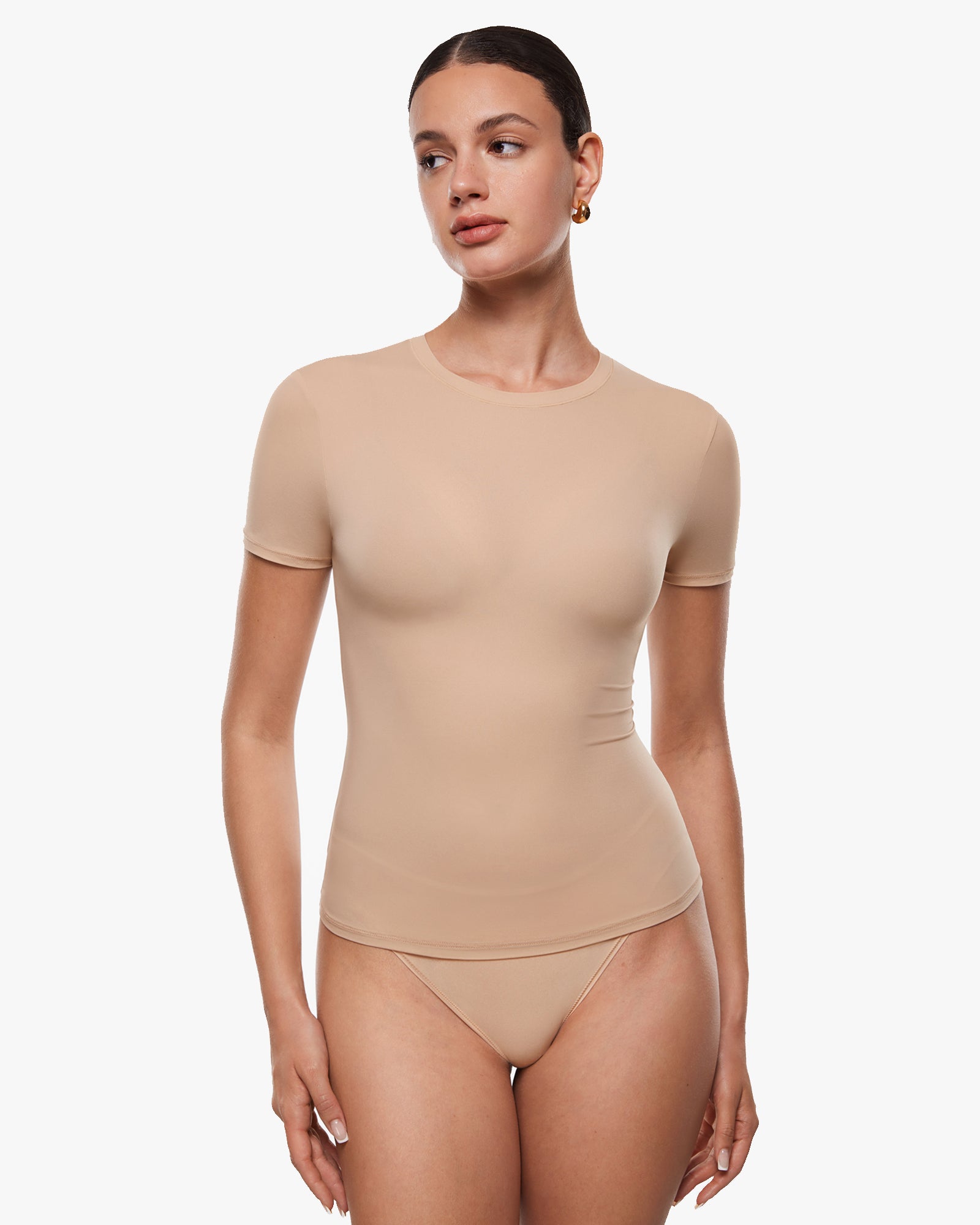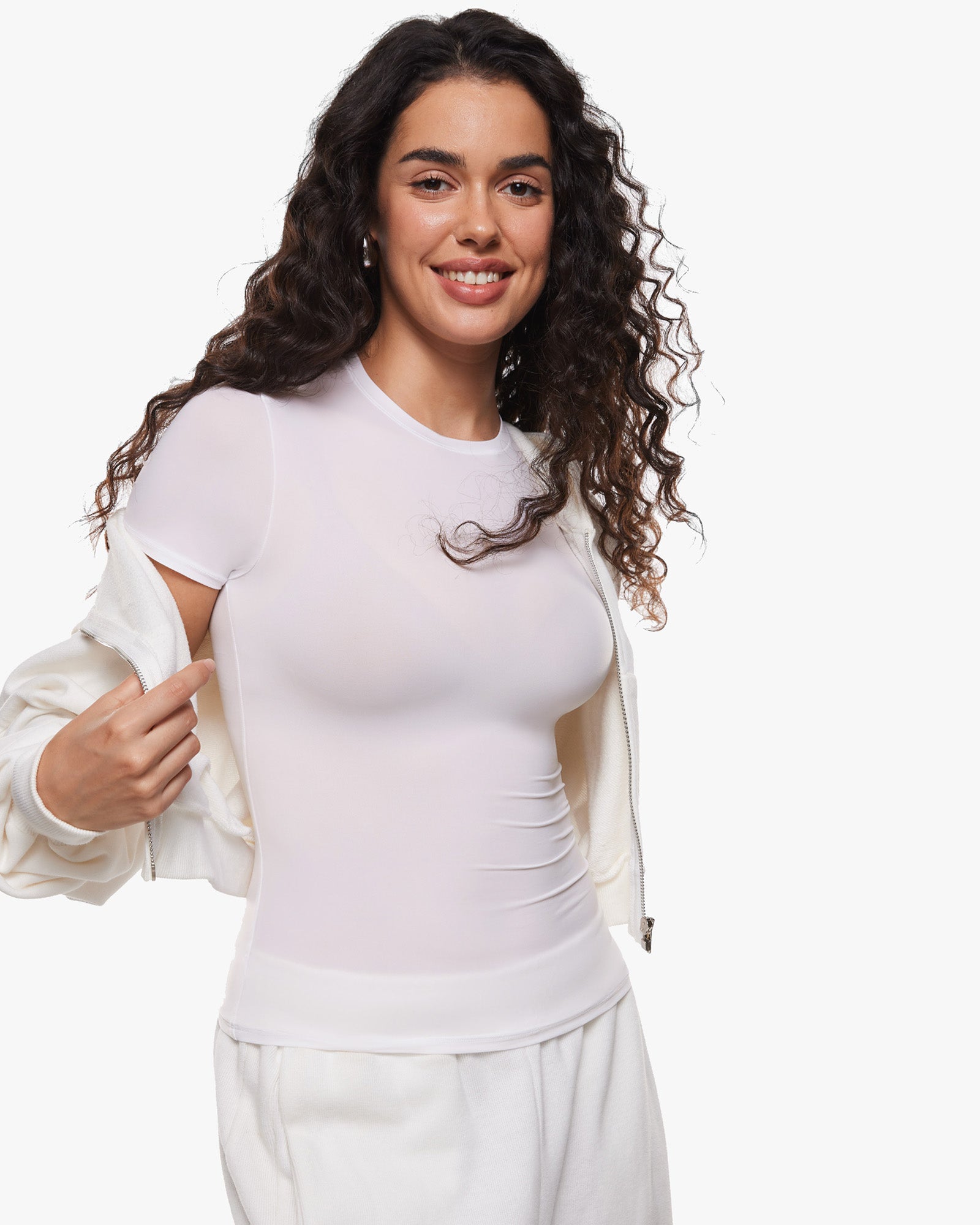 Crafted for ultimate comfort and confidence, this short-sleeve top from the Inbarely Soft Collection redefines everyday wear. Luxuriously soft, ultra-stretchy fabric molds to your curves like a second skin, offering a body-hugging fit. The featherlight, breathable material keeps you cool all summer long, while its single-layer design ensures seamless comfort — perfect for workouts, brunch dates, or lazy weekends.